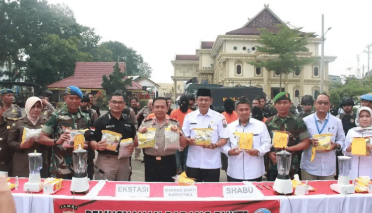 Turut hadir dalam acara pemusnahan tersebut Sekda Provinsi Jambi, Korem 042/Gapu dan Denpom, perwakilan dari kejaksaan, pengadilan, Bea Cukai, serta undangan lainnya. Untuk barang bukti yang dimusnahkan terdiri dari 12 kg lebih sabu-sabu dan 21.197 butir ekstasi. Barang haram tersebut merupakan hasil dari penangkapan 5 orang tersangka.