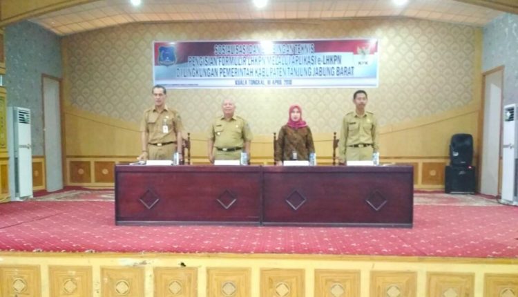 SERAMBIJAMBI.COM, KUALA TUNGKAL – Dalam rangka mewujudkan penyelenggaraan pemerintahan yang bersih dan bebas dari korupsi Pemerintah Kabupaten Tanjung Jabung Barat melalui BKP-SDM Tanjab Barat menyelenggarakan Sosialisasi dan Bimbingan Teknis Pengisian Formulir LHKPN melalui aplikasi e-LHKPN bertempat di Gedung Balai Pertemuan Kantor Bupati, Selasa (10/04/18).