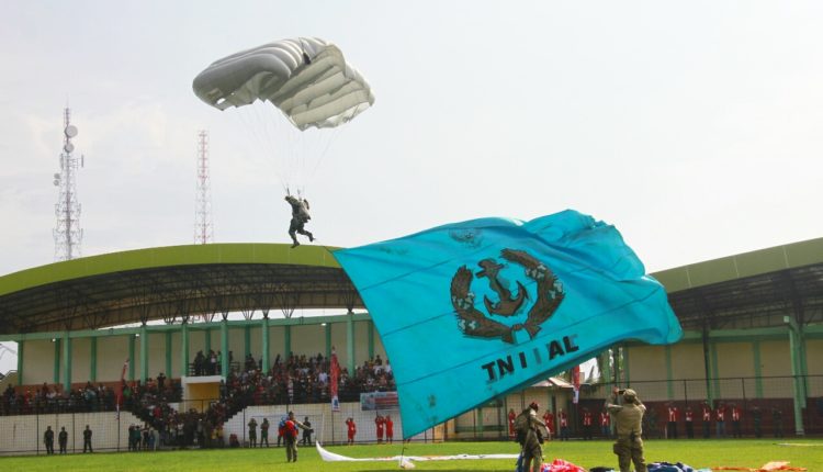 Wow, Atraksi 15 Penerjun Payung dari Kopaska dan YonTaifib, Curi Perhatian Ribuan Warga Kuala Tungkal