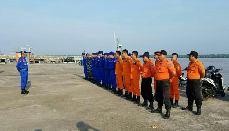 SERAMBIJAMBI.COM, KUALA TUNGKAL – Sat Polairud Polres Tanjab Barat, TNI-AL, Sat Polairud Mabes Polri, Sat Polairud Polda Jambi dan Basarnas melakukan pengamanan khusus jalur sungai Pengabuan dalam rangka kegiatan simulasi karhutla dan hiburan rakyat atraksi terjun payung, Kamis (19/4/18).