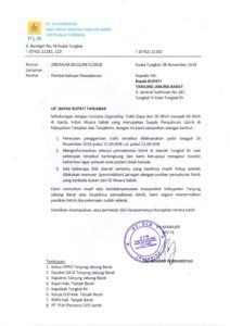 Dalam surat pemberitahuan itu, pihak PLN terpaksa memadamkan sebagian jalur selama proses pekerjaan penggantian Trafo.