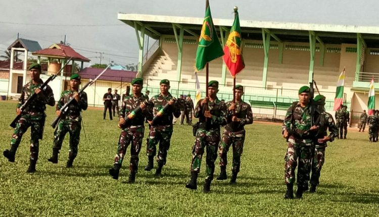 SERAMBIJAMBI.ID, TANJAB BARAT – Danrindam II/Swj Kolonel Inf Dwi Wahyudi S, AN, MM memimpin upacara Pelepasan Peleton Beranting Yudha Wastu Pramuka Jaya ke 73 Tahun 2018, di lapangan Karya Bhakti Kuala Tungkal, Kabupaten Tanjab Barat, Minggu (16/12/18).