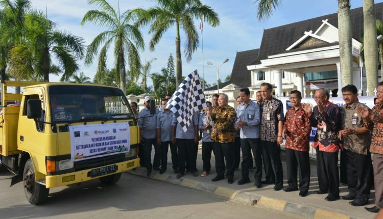 Bupati Tanjab Barat Dr. Ir. H. Safrial, MS secara simbolis melepas truk-truk pengangkut beras dengan ditandai pengangkatan bendera oleh Bupati Tanjab Barat pertanda dimulainya operasi pasar yang akan disalurkan ke dalam Kecamatan Tungkal Ilir di Kelurahan tungkal II dan Tungkal Harapan sebanyakak 8 Ton .