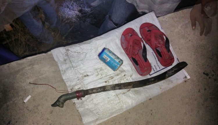 Dari TKP anggota berhasil mengamankan barang bukti diduga milik pelaku yakni, satu bilah parang, sepasang sendal jepit warna merah dan satu buah karung bekas.