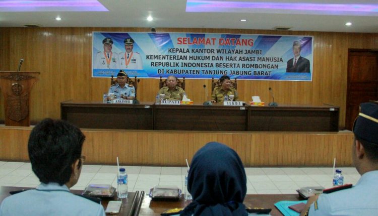 Kakanwil Kemenkumham Agus Nugroho Yusup M.Si mengatakan kunjungan kerja ini dalam rangka mensinergikan pelaksanaan tugas dan fungsi Kantor Wilayah Kementerian Hukum dan HAM provinsi Jambi dengan Pemerintah Daerah Kabupaten Tanjab barat.