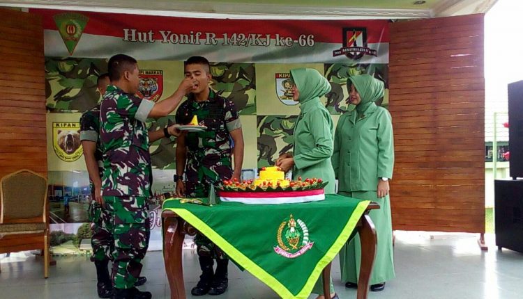 “Serta dalam peringatan syukuran HUT ini pula tumpeng diberikan kepada Serda Subakti karena lahirnya bertepatan dengan Hari Ulang Tulang Yonif R 142/KJ,” ujarnya