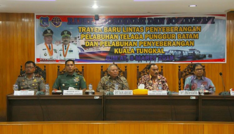 Penambahan rute ini dibahas dalam Rapat Koordinasi dan Sosialisasi Trayek Baru Lintas Penyeberangan Telaga Punggur Batam dan Pelabuhan Penyeberangan Kuala Tungkal, Jumat (8/3/2019)