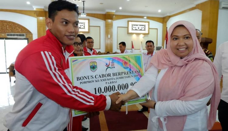 Bupati Masnah Serahkan Bonus kepada “Atlet Muaro Jambi Berprestasi” pada Porprov 2018