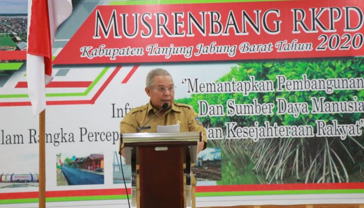 SERAMBIJAMBI.ID, TANJAB BARAT – Bupati Tanjung Jabung Barat DR. Ir. H. Safrial, MS membuka secara resmi Musyawarah Perencanaan Pembangunan rencana kerja Pemerintah Daerah (Musrenbang RKPD) Kabupaten Tanjung Jabung Barat Tahun 2020, Selasa (19/3/19) bertempat di Balai Pertemuan Kantor Bupati.