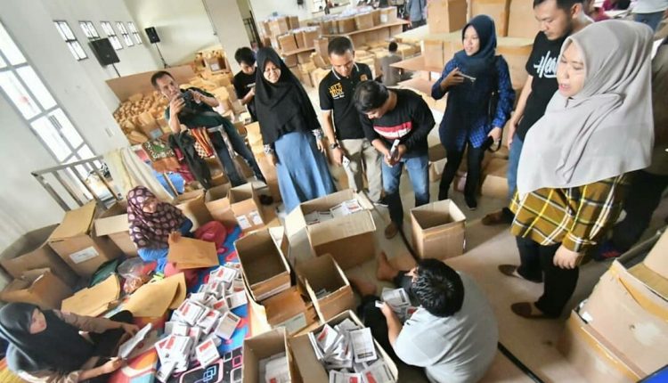 SERAMBIJAMBI.ID, MUARO JAMBI – Bupati Kabupaten Muaro Jambi, Hj. Masnah Busro melakukan pemantauan proses penyortiran dan pelipatan surat suara Pemilu sertentak 2019, Rabu (2/4/19. Pemantauan dilakukan di Gedung Serbaguna Komplek Perkantoran DPRD Muaro Jambi.