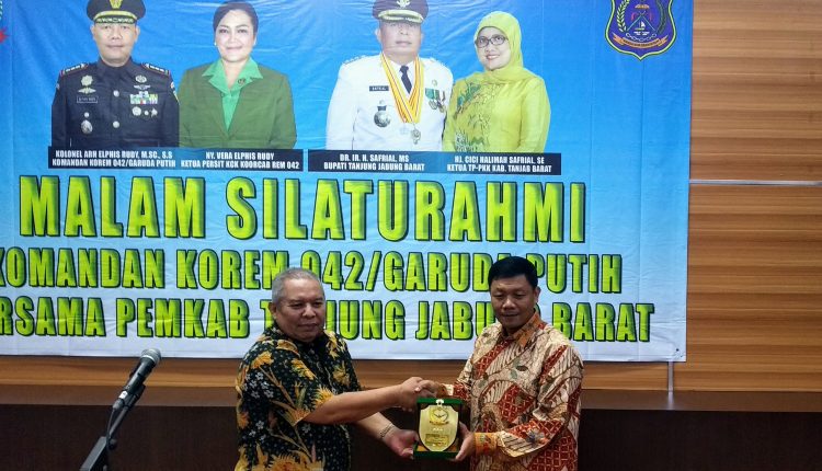 SERAMBIJAMBI.ID, TANJAB BARAT – Pemerintah Kabupaten Tanjab Barat menggelar acara Malam Silahturahmi bersama Komandan Komando Daerah Militer (Danrem) 042/Gapu, Kolonel Arh Elphis Rudy, Kamis malam (4/4/19) bertempat di Aula rumah Jabatan Bupati Tanjab Barat.