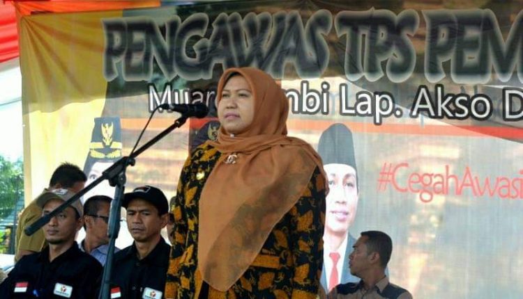 Bupati Muaro Jambi Hj. Masnah Albusyro, SE saat menjadi pimpinan Apel Siaga Pengawas TPS Pemilu Tahun 2019, menyampaikan dengan adanya apel ini, diharapkan saat Pemilu nanti dapat berjalan dengan aman dan Kondusif.