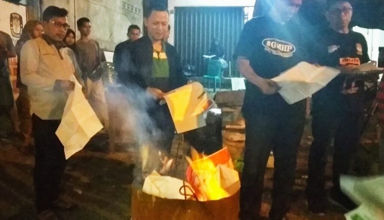 SERAMBIJAMBI.ID, TANJAB BARAT – Komisi Pemilihan Umum (KPU) Kabupaten Tanjab Barat melakukan pemusnahan 7.917 lembar surat suara yang tak terpakai maupun rusak. Pemusnahan sendiri dilakukan dengan cara dibakar, Selasa (16/4/19) malam, di depan Gudang Logistik KPU Tanjab Barat.