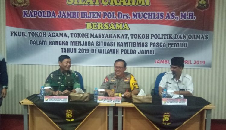 SERAMBIJAMBI.ID, JAMBI – Kapolda Jambi Irjen Pol Drs. Muchlis A.S, M.H., menggelar silaturahmi Kamtibmas yang dilaksanakan di ruang Cofe Morning Polda Jambi, Kamis (18/4/19).
