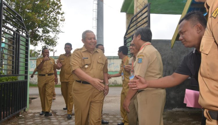SERAMBIJAMBI.ID, TANJAB BARAT – Bupati Kabupaten Tanjab Barat Dr. Ir. H. Safrial, MS melakukan peninjauan pelaksanaan Ujian Nasional Berbasis Komputer di SMP Negeri 1 dan SMP Negeri 2 Kuala Tungkal, Selasa (22/4/19).