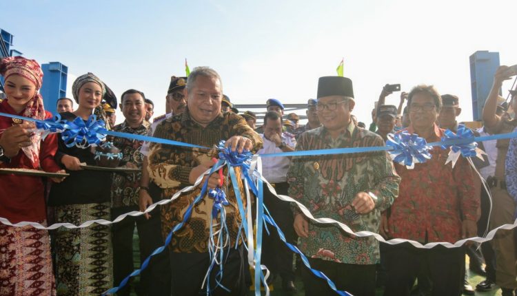 SERAMBIJAMBI.ID, TANJAB BARAT – Bupati Kabupaten Tanjab Barat Dr. Ir. H Safrial, MS meresmikan trayek penyeberangan KMP. Satria Pratama, trayek baru Kuala Tungkal – Batam, Kamis (2/5/19) di pelabuhan Roro Kuala Tungkal. Peresmian ditandai dengan pemotongan Pita oleh Bupati Tanjab Barat.