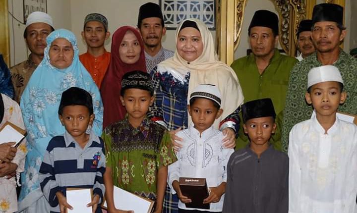 Kegiatan safari ramadhan dilanjutkan dengan pemberian bantuan dan santunan oleh bupati kepada anak yatim – piatu, lansia dan bantuan 20 karpet hambal dan satu unit speker aktif untuk masjid darrusalam.