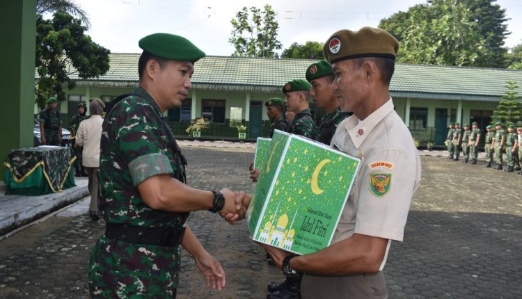 SERAMBIJAMBI.ID, JAMBI – Komandan Korem 042/Gapu Kolonel Arh Elphis Rudy, M,Sc, S.S diwakili oleh Kepala Seksi Personel Letnan Kolonel Inf Tomy R, Lubis, menyerahkan bingkisan lebaran Idul Fitri kepada seluruh prajurit dan PNS Korem 042/Gapu. Penyerahan bingkisan lebaran dilakukan secara simbolis setelah pelaksanaan apel pagi, yang digelar di halaman Makorem 042/Gapu, Selasa (28/5/2019).