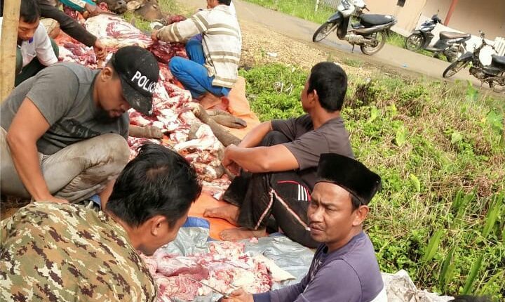 Tujuh ekor sapi dipotong pada Senin pagi (3/6/19) di kediaman orangtua Romi, H Hasan Ismail di Muara Sabak. Dari total tujuh ekor sapi itu berhasil dikumpulkan sedikitnya 850 kg daging dan tulang.