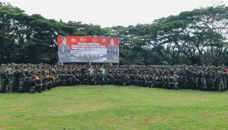 Yang mana sebanyak 450 personel Satgas Yonif Raider 142 Ksatria Jaya mengikuti latihan pra-tugas dalam rangka pengamanan perbatasan (Pamtas) Republik Indonesia (RI) – Republik Democratic Timor Leste (RDTL) di wilayah Nusa Tenggara Timur, kemudian bapak Kapolda Jambi telah memberikan bantuan dan dukungan dalam kegiatan penutupan latihan pratugas Satgas Yonif Raider 142 Ksatria Jaya.