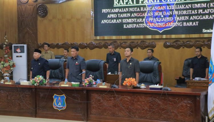 SERAMBIJAMBI.ID, TANJAB BARAT – Bupati Tanjab Barat DR. Ir. H. Safrial MS sampaikan Nota Rancangan Kebijakan Umum APBD (KUA) dan Prioritas Plafon Anggaran Sementara (PPAS) APBD Tahun Anggaran 2020 pada Rapat Paripurna Pertama DPRD Kabupaten Tanjab Barat, Senin (08/07/19).