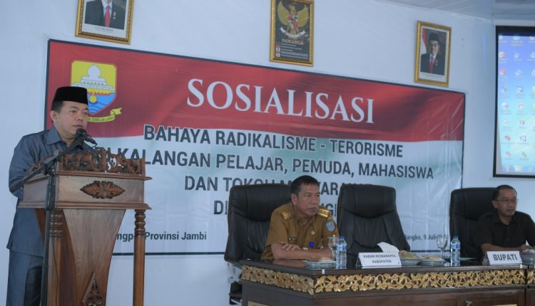 Hal tersebut ditegaskan Bupati Merangin, H. Al Haris usai acara sosialisasi bahaya radikalisme-terorisme di kalangan pelajar, pemuda, mahasiswa dan tokoh masyarakat di aula Kesbangpol pada Selasa (9/7/19).
