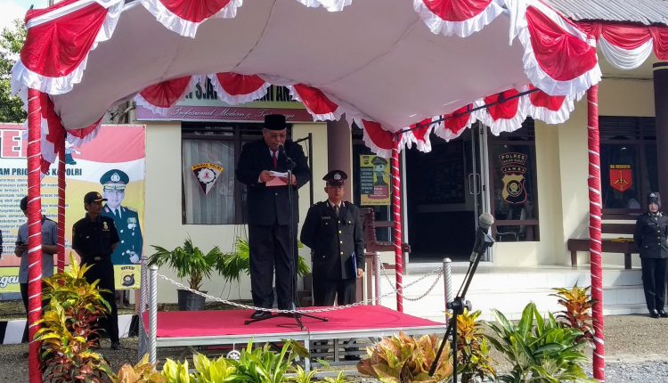 Bupati Safrial membacakan amanat dari Presiden RI, Joko Widodo, dalam sambutannya itu menyampaikan apresiasi terhadap kinerja Polri dalam mengamankan sejumlah agenda Nasional. Seperti Asian Games, Asian Para Games, hingga mengamankan Pemilu 2019 belum lama ini.