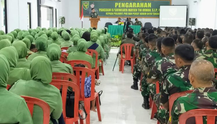 Setelah itu, Pangdam langsung menemui ratusan Prajurit, PNS, dan anggota Persit KCK Kodim 0419/Tanjab yang sudah menanti dengan sabar untuk menerima arahan dari pimpinannya.