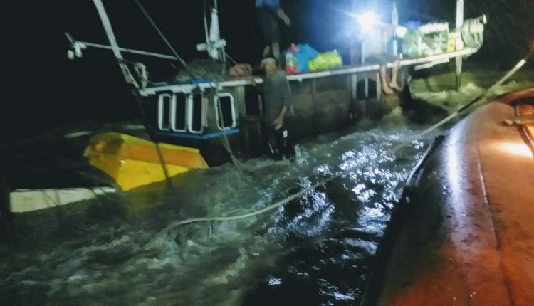 SERAMBIJAMBI.ID, TANJAB BARAT – Kapal nelayan Kuala Tungkal ‘Doa Ibu 2 GT 5’ tenggelam di Perairan Sungai Pengabuan tepatnya di dekat Parit 10, Pangkal Babu Desa Tungkal I, Kecamatan Tungkal Ilir, Kabupaten Tanjab Barat, pada Jum’at (07/2/20) malam, sekitar pukul 20.20 WIB.