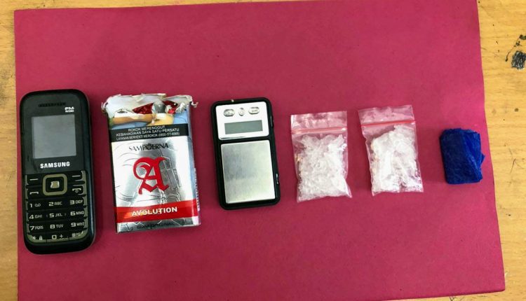 Dari hasil penggeledahan terhadap kedua pelaku ditemukan barang bukti berupa Dua paket sedang diduga sabu berat bruto 10,18 gram.