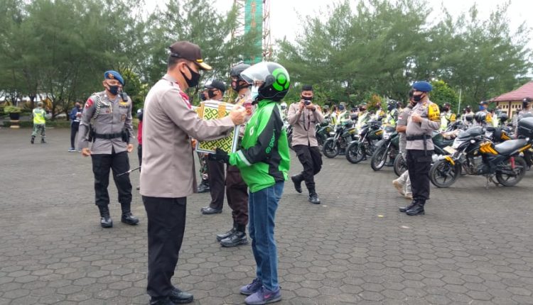Dimana Polda Jambi kembali memberikan bantuan kepada masyarakat Jambi yang terdampak Covid 19, penyerahan kali ini beda dengan bantuan Sebelumnya, penyerahan itu di bantu dengan pasukan ojek online (Ojol), Kamis (30/4/20).