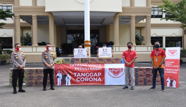 Bantuan diserahkan perwakilan PT Wing Jambi dan diterima langsung oleh Kapolda Jambi Irjen Pol Firman Santyabudi didampingi Karo Ops Polda Jambi, Kombes Pol Imam Setiawan.