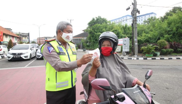 Ditlantas Polda Jambi Bagikan Masker Gratis ke Pengguna Jalan