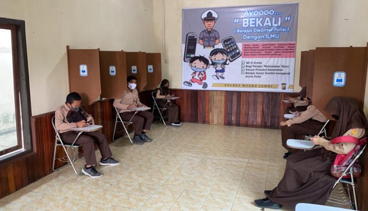 SERAMBIJAMBI.ID, MUARO JAMBI – Dimasa Pandemi Covid-19 dan menuju tatanan kebiasaan hidup baru, Polres Muaro Jambi meluncurkan program Belajar di Kantor Polisi (Bekali) dalam rangka membantu siswa belajar via daring.