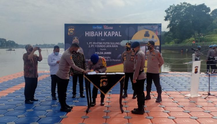 SERAMBIJAMBI.ID, JAMBI – Kapolda Jambi, Irjen Pol Firman Santyabudi menerima langsung Hibah 3 Kapal Speedboat rescue dari PT. Pratiwi Putri Sulung, PT.Yosindo Jayaraya dan PT. WC, Senin, (19/10/2020).