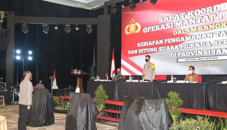 SERAMBIJAMBI.ID, – JAMBI Kepala Kepolisian Daerah (Kapolda) Jambi, Irjen Pol Drs Firman Shantyabudi, M.Si., membuka rapat Koordinasi Pemantapan Kesiapan Pelaksanaan Pengamanan Pilkada Serentak Tahun 2020 di Swiss-Belhotel Jambi, Kamis (05/11).