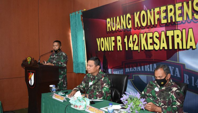 di Ruang Yudha Batalyon Raider 142/Kj dan dilanjutkan Apel Kesiapsiagaan Satgas Sigap Covid-19 Yonif Raider 142/Kj.