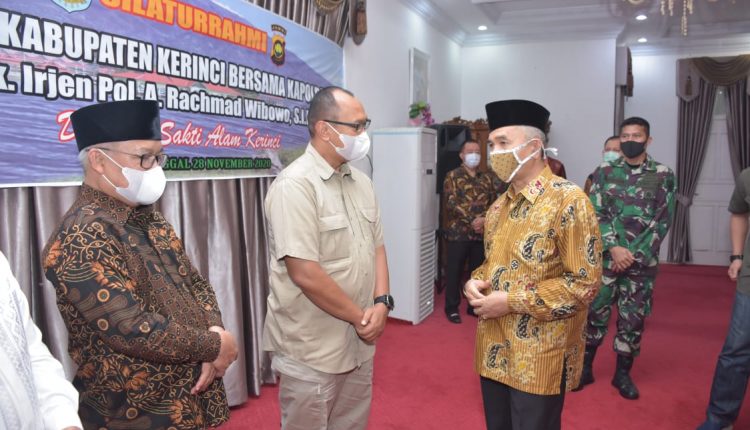 SERAMBIJAMBI.ID, JAMBI – Kepala Kepolisian Daerah (Kapolda) Jambi Irjen Pol A Rachmad Wibowo melakukan kunjungan ke Bupati dan Forkompinda di Rumah Dinas Bupati Kabupaten Kerinci, Sabtu (28/11/2020) malam.