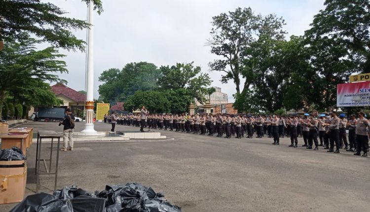 Pelaksanaan apel kesiapan dan pembagian kelengkapan APD terhadap Satgas Gabungan pengamanan TPS yang tersebar di Provinsi Jambi yang memberikan APD yaitu meliputi dari Personil Polres Batang Hari , Polres Tebo, Polres Bungo ,Polres Merangin, Polres Sarolangun, Polres Tanjab Barat ,Polres Tanjab Timur , Polres Muaro Jambi ,dan Polresta Jambi, serta Polres Kerinci. (Syah/**)