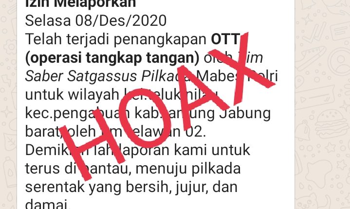 “Itu tidak benar, Hoax,” ujarnya Selasa (8/12/20) malam.