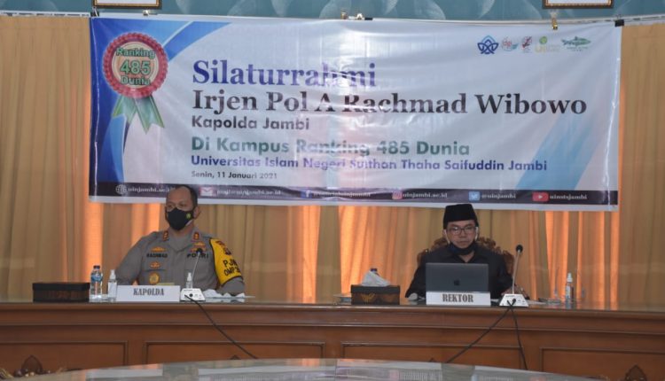 SERAMBIJAMBI.ID, JAMBI – Kapolda Jambi, Irjen Pol A Rachmad Wibowo menggelar silaturahmi dengan Rektor dan Senat Akademisi Universitas Islam Negeri (UIN) Sultan Thaha Saifudin Jambi di Mendalo, Muaro Jambi, Jambi, Senin (11/1/2021).