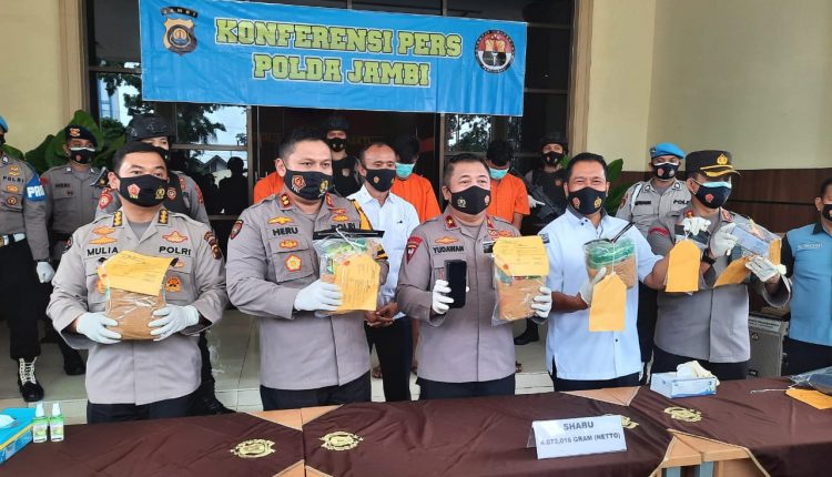 Hal ini disampaikan langsung oleh Wakapolda Jambi Brigjen Pol Drs Yudawan yang didampingi Direktur Reserse Narkoba Polda Jambi Kombes Pol Dewa Putu Gede Artha, Kapolres Batanghari AKBP Heru Ekwanto, dan Kapolres Bungo AKBP Moh Lutfi saat konferensi pers di Mapolda Jambi, (13/1).