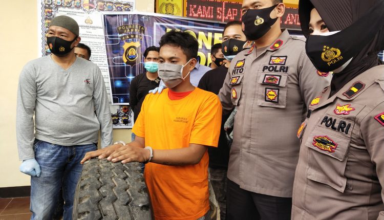 SERAMBIJAMBI.ID, JAMBI – Seorang pemuda asal Tembesi Kabupaten Batanghari nekat mencuri Ban dan Velg mobil milik PT Kosambi Laksana Mandiri yang terletak di jalan lingkar selatan Kota Baru, Kota Jambi lantaran kepepet untuk membiayai anak yang sedang sakit.