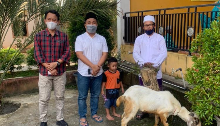 Tampak hadir AKBP Ali Sadikin, SE Dit Intelkam Polda Jambi mewakili Polda Jambi yang menyaksikan langsung penyerahan satu ekor kambing tersebut. (Syah)