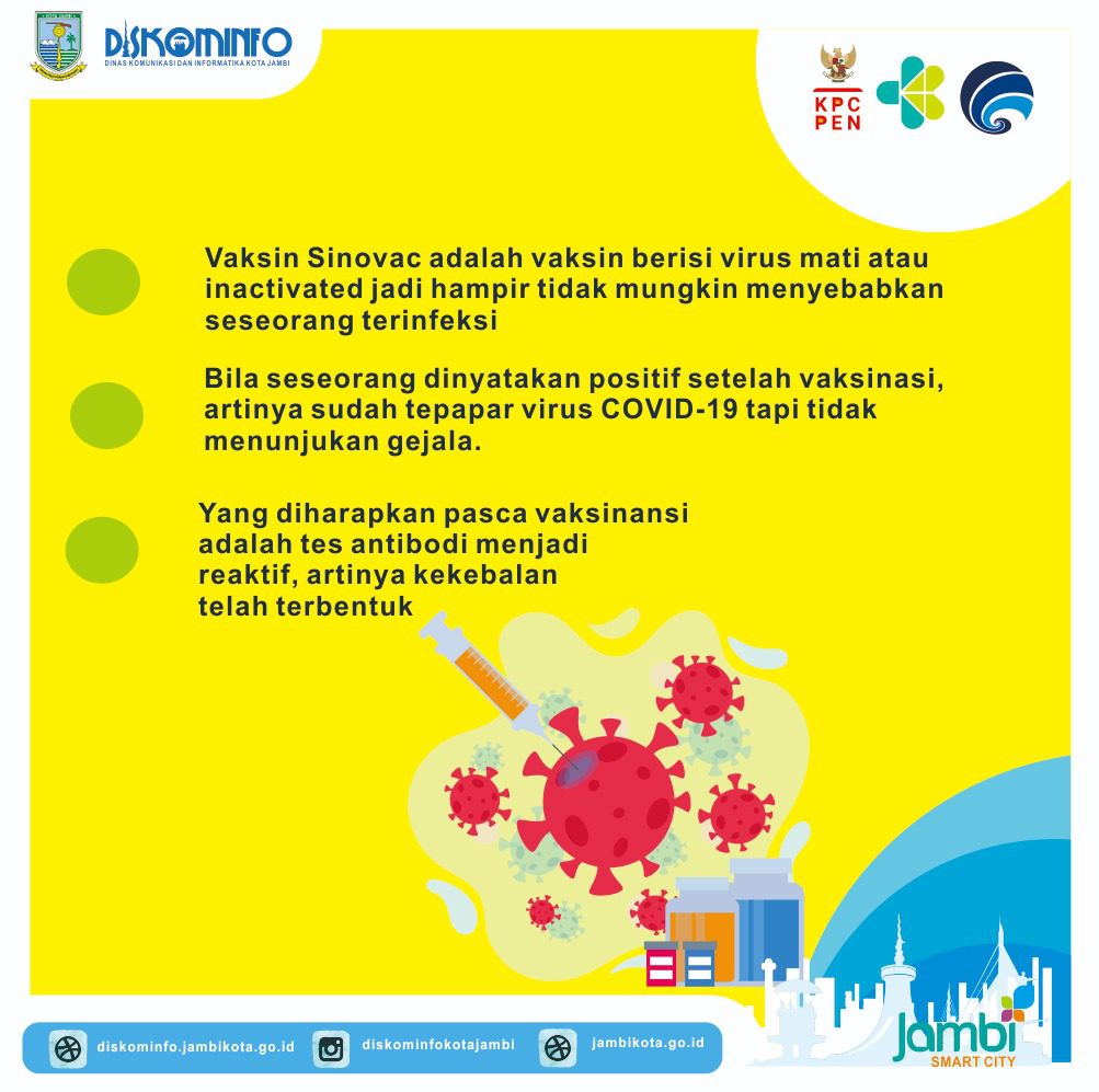 Vaksin Covid-19 Sinovac telah teruji keamanan, mutu, khasiat dan kehalalannya. Vaksin ini dikembangkan menggunakan metode inactivated vaccine, yang telah terbukti aman, tidak menyebabkan infeksi serius serta hampir tidak mungkin menyebabkan seseorang terinfeksi.