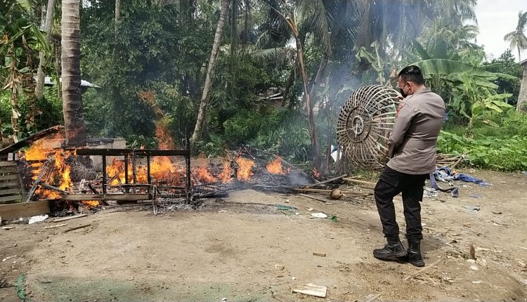 ” Kita membakar tempat yang dijadikan sarana perjudian sabung ayam,” ujar Kompol Afrito Marbaro.