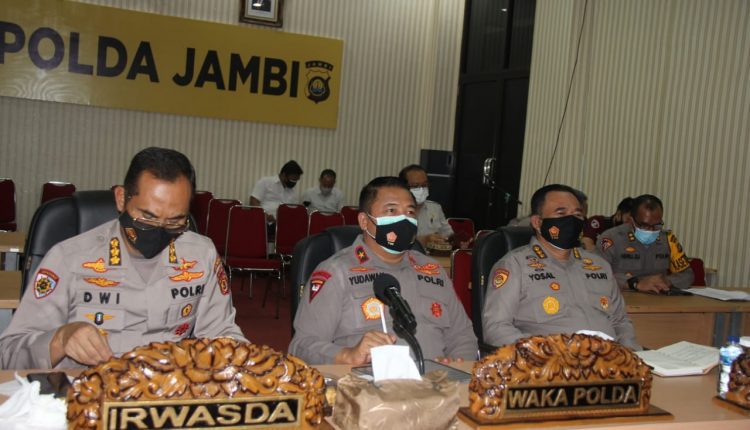 SERAMBIJAMBI.ID, JAMBI – Wakapolda Jambi Brigjen Pol Yudawan Roswinarso mengikuti video conference (Vicon) dengan Agenda Taklimat Awal Pemeriksaan BPK RI atas laporan Keuangan Polri Tahun 2020 bertempat di Ruang Coffe Morning Mapolda Jambi, Rabu (10/2/2021).
