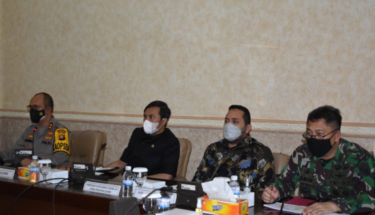 Rapat berlangsung aman tertib sesuai protokol kesehatan, Turut hadir Ketua DPRD Provinsi Jambi, Kapolda Jambi, Kasrem 042/Gapu, Kadinkes Provinsi Jambi, Kadis Sosial Duk Capil Provinsi Jambi, Dirut RSUD Raden Mattaher Provinsi Jambi, Kalabkesda Provinsi Jambi, Kabapelkesda Provinsi Jambi, BPBD Provinsi Jambi, Ketua dan anggota Satgas Covid 19 Provinsi Jambi.(*)