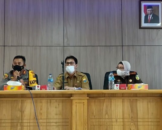 ” Pada Rapat Koordinasi ini kita mengundang beberapa Instansi diantaranya Dinas Pendidikan, Dinas Koperindag, Dinas Kesehatan agar menerapkan sesuai zonasinya, untuk sekolah yang sudah tutup. Saya mengimbau kepada Dinas Kesehatan agar mengupdate perhari sesuai zonasi terkait data Covid19″, ujarnya.