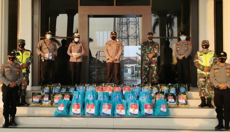 Distribusikan Bansos TNI-Polri ,Kapolres bersama Danramil Bagikan ke UMKM Terdampak PPKM Mikro